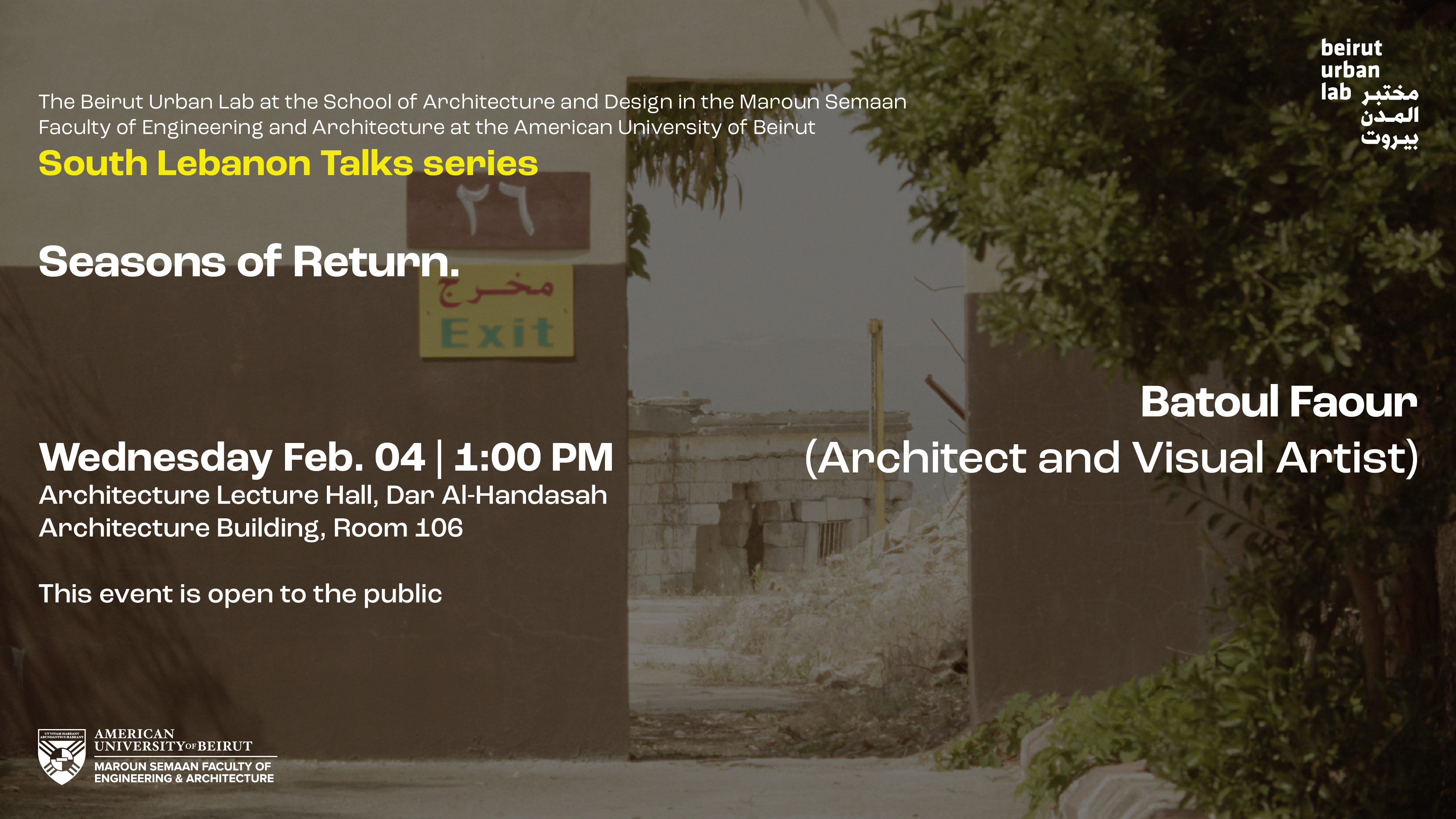 The second talk will be delivered by Batoul Faour, an architect and visual artist, titled